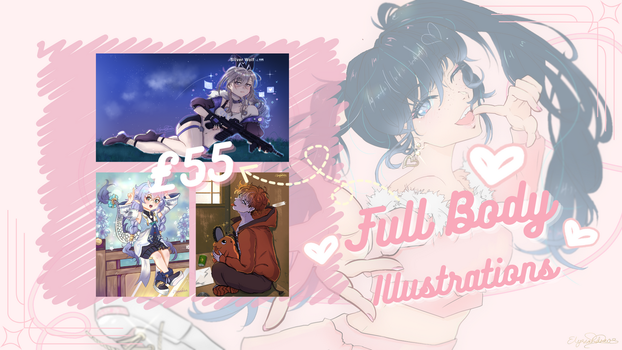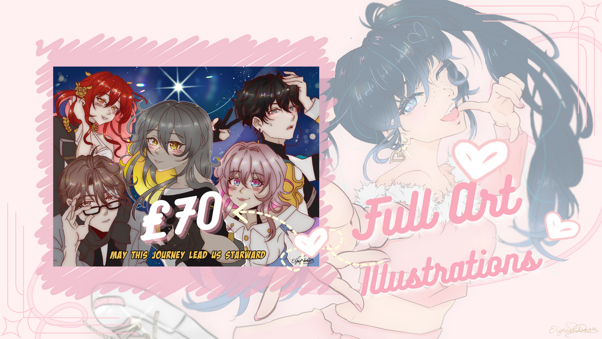Please complete the form to apply for a commission OR feel free to DM me on Instagram (@elysiahdraws) or Discord (@elysiahx).